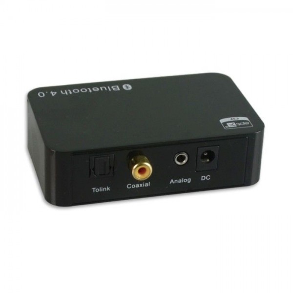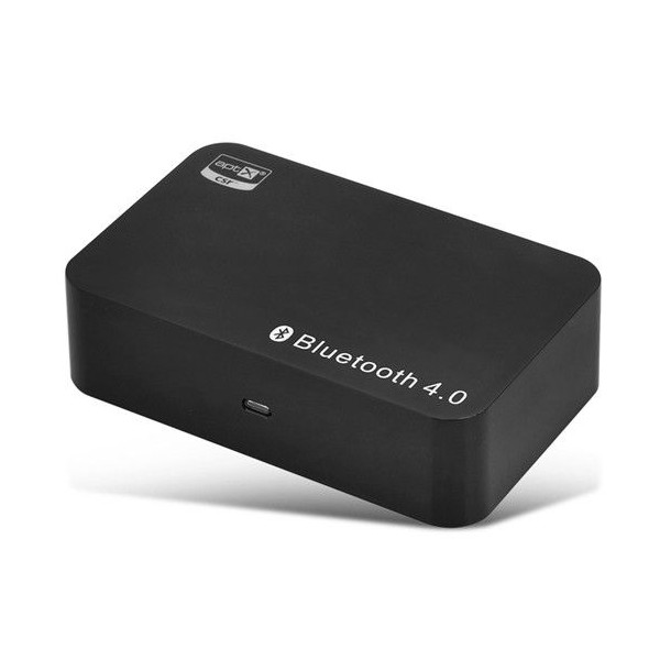 Ricevitore Musicale Bluetooth 4.0 - consente di ascoltare la musica memorizzata in dispositivi come per esempio smartphone e tablet tramite il vostro impianto stereo, senza l’ausilio di nessun cavo di collegamento tra dispositivo e stereo. - Il dispositivo ha una uscita audio digitale ottica, una coassiale ed una analogica Jack 3,5 mm per assicurare una migliore qualità audio ed una facilità di connessione con tutti i dispositivi. - Possibilità di memorizzare fino a 10 dispositivi - Il prodotto supporta la versione Bluetooth 4.0 ed il profilo A2DP/IOPT che assicurano stabilità della trasmissione ed anche un migliore qualità dell’ audio. - Versione Bluetooth: 4.0 - Profilo Bluetooth: A2DP/IOPT - Codifiche supportate: AptX®, SBC - Numero dispositivi memorizzabili 10 - Frequenza: 2402 ~ 2480 Mhz - Distanza di funzionamento max 10 m - Dimensioni: 91x57x27 mm - Livello uscita: 2+/-10% Vrms - Risposta in frequenza 20 - 20 kHz - Isolamento canale L/R: -45dB - SNR (rapporto segnale-rumore nominale audio R/L) >= 90dB - THD (nominale audio R/L): 0.05%