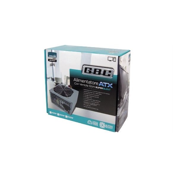Alimentatore ATX V.2.3 per PC desktop 600W con ventola 12cm super silent a 1600 RPM. Connettore 24 pin per mainboard; 2 connettori molex per Hard Disk; 3 connettori SATA; un connettore per Floppy Disk Drive; Connettore 4 + 4 pin 12V per CPU; Connettore 6+6+2 pin 450mm per PCI-E; PFC e filtro EMI; Cavo alimentazione Schuko 1,2m incluso.