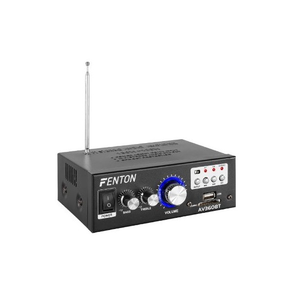 Mini amplificatore per uso domestico con elevata efficienza: anche ai livelli di volume più alti garantisce un'elevata pressione acustica. Controlli alti e bassi separati e volume master. Tuner FM integrato. Ingresso AUX RCA per sorgente esterna. Dimensioni e peso contenuti. Porta USB e slot SD MP3 compatibili. Bluetooth integrato per connessione diretta a sorgenti come smartphone. Potenza 2x 40W a 8?. Telecomando incluso. Dimensioni 160 x 115 x 55mm, peso 0,95Kg. Alimentazione 220Vca e/o 12Vcc.