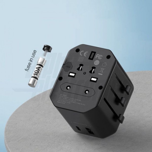 Adattatore universale da viaggio, utilizzabile in più di 150 paesi nel mondo per alimentare tutti i dispositivi elettronici. In particolare utilizzabile in Europa, Regno Unito, Stati Uniti e Australia.