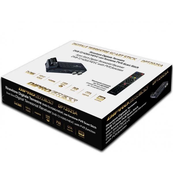 Il DPT202SB è un Decoder Digitale Terrestre Full HD PVR di 4a generazione compatibile con le trasmissioni standard DVB-T2 HEVC H265 MAIN 10 bit. La nuova rivoluzione tv in arrivo dal 1° gennaio 2020 obbligherà tutte le emittenti italiane ad un drastico cambio di frequenze in uso e imporrà l’adozione del nuovo standard trasmissivo, denominato DVB-T2, ovvero il secondo tempo del digitale terrestre. La transizione al nuovo standard sarà graduale, regione per regione ed emittente per emittente, porterà dei cambiamenti anche per i telespettatori, e avrà termine il 30 giugno 2022.