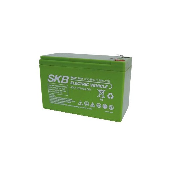 Le batterie SKB ad uso ciclico della serie SKEV grazie all' utilizzo di una piastra particolare, è idonea per l'utilizzo in biciclette elettriche ed in apparecchiature per disabili, carrelli porta mazze da golf, elevatori ecc.. La sua efficienza nelle scariche è data dalla possibilità di effettuare ca. 600 cicli al 60% di profondità di scarica (3,6A di scarica continua) mentre scaricata al 30% della capacità raggiuge i 1.200 cicli. La durata di vita della batteria viene considerata in numero di cicli.