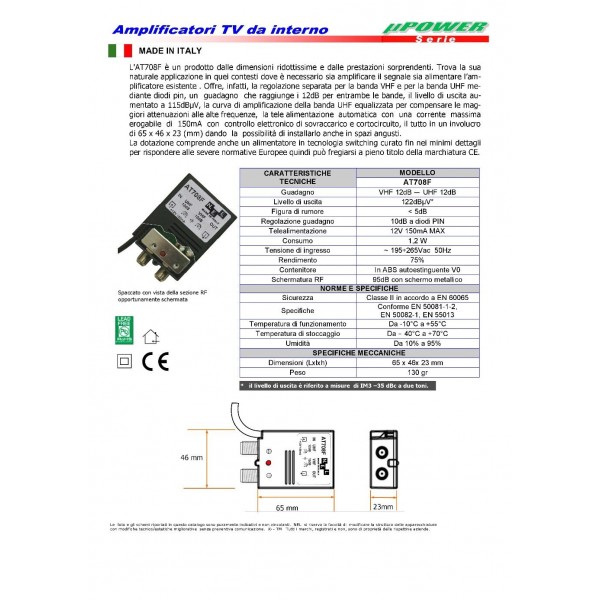 di 100mA. Gli amplificatori µLUX sono provvisti di filtro LTE a selezione elettronica 4G-5G che permette di installare sin