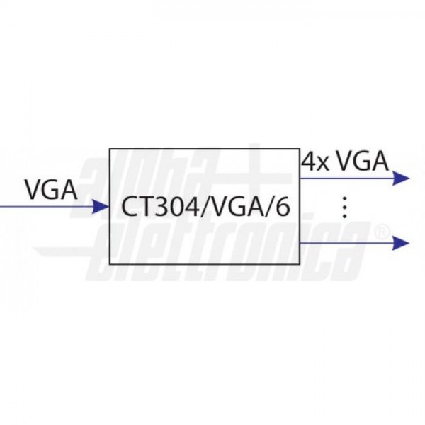 Il distributore CT304/VGA/6 è la soluzione ideale per la distribuzione del segnale VGA. Il distributore (splitter) di segnale CT304/VGA/6 suddivide l’ingresso VGA e il segnale audio/stereo in 4 uscite per inviare il segnale sorgente in ingresso ad altrettante uscite simultaneamente. Tutte le due uscite sono amplificate ed equalizzate per ottenere le migliori prestazioni.