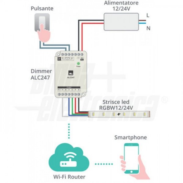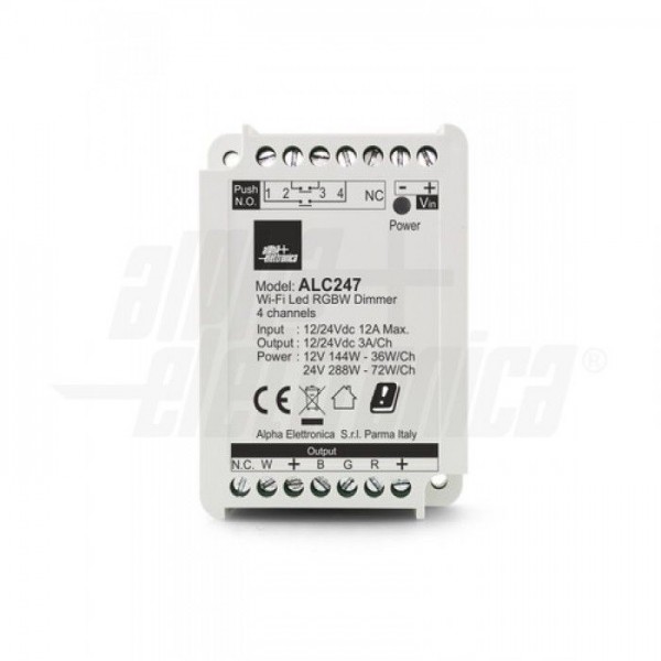 Dimmer RGBW per strisce led e sorgenti led resistive a tensione costante 12V oppure 24V. Il controllo dell’intensità luminosa viene eseguito applicazione SmartLife, disponibile per Android e iOS, e tramite pulsante, il quale permette l'accensione/spegnimento dela sorgente luminosa a la variazione dell'intensità.
