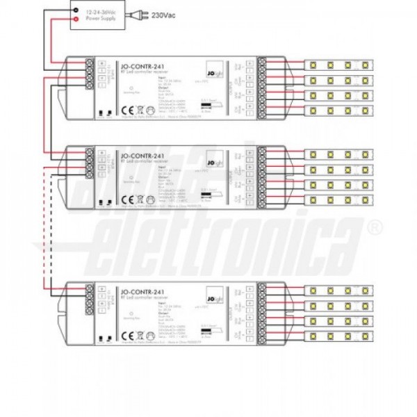 - Ad ogni ricevitore possono essere collegati nastri monocolore su ciascuna uscita