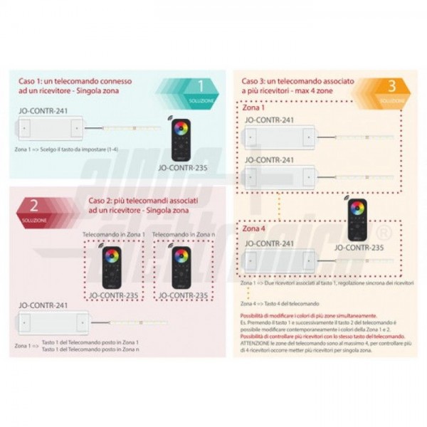 - Ogni zona deve essere composta da almeno un ricevitore JO-CONTR-239, JO-CONTR-241 oppure JO-CONTR-241DIN (non incluso)