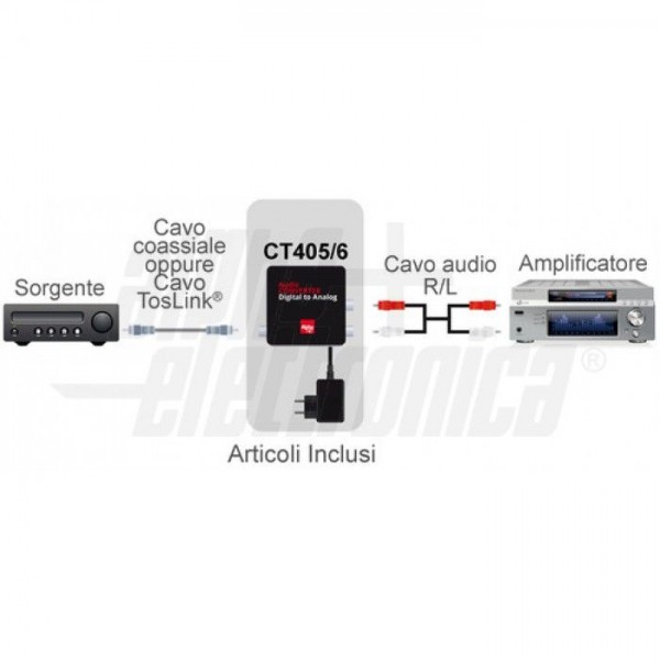Il convertitore CT405/6 permette di convertire il segnale audio digitale in un segnale audio analogico.