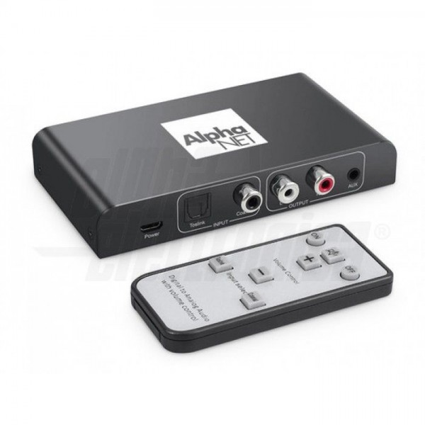 - Converte audio Coax o TOSLINK in audio L/R + uscita cuffie.