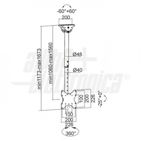 Installabile anche su soffitti inclinati: regolazione +60°-60°.
