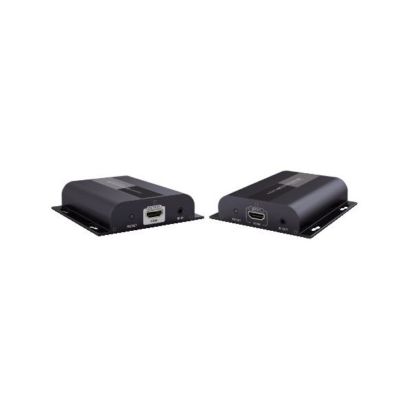 Composto da un trasmettitore e un ricevitore, consente di amplificare il segnale HDMI, notoriamente molto sensibile alla dispersione dovuta alla lunghezza eccessiva dei cavi (che non dovrebbero mai superare i 15m) e di trasferirlo fino ad una distanza massima di 120m. Supporta risoluzioni Full HD fino 1080p; utilizza 1 singolo cavo di rete cat. 6 o 7. Incorpora inoltre alcune nuove tecnologie che lo rendono uno strumento estremamente flessibile per l'utilizzatore: un ripetitore di telecomando che consente il controllo in remoto della sorgente HDMI, come i Decoder HD, anche in accoppiata con uno splitter HDMI; è inoltre basato sullo standard TCP/IP che ne consente l'uso, in accoppiata con un router o uno switch Ethernet, con ricevitori multipli (14.2800.38). Lo switch può essere usato in cascata con altri switch per estendere ulteriormente la portata del segnale: a valle dello switch la portata sarà nuovamente di 100m. Ideale per tutte le situazioni professionali in cui la qualità del segnale può essere influenzata da interferenze di qualunque tipo, e per centri di controllo sicurezza, sale proiezioni, sale conferenze, fiere, uffici in genere, etc. Ideale inoltre per applicazioni domestiche che richiedano il controllo in remoto della sorgente A/V HD.
