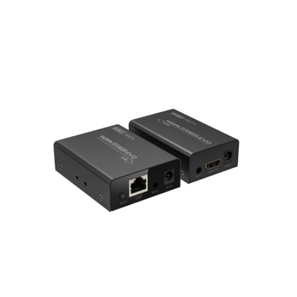 Composto da un trasmettitore e un ricevitore, amplifica il segnale HDMI, molto sensibile alla dispersione dovuta alla lunghezza eccessiva dei cavi (che non dovrebbero mai superare i 15m) e di trasferirlo fino ad una distanza massima di 60m. Supporta risoluzioni fino a FullHD 1080p; utilizza 1 singolo cavo di rete cat. 6 o 7. Ampiezza di banda 2,25Gbps per canale (6,75Gbps in totale). Ideale per tutte le situazioni in cui la qualità del segnale può essere influenzata da interferenze di qualunque tipo, e per centri di controllo sicurezza, sale proiezioni, sale conferenze, fiere, uffici in genere, etc. Risolve il problema del passaggio dei cavi HDMI nelle canaline già esistenti. L'uscita HDMI passante (loopout) del trasmettitore consente la connessione a un display HD di prossimità: soluzione ideale per la connessione di decoder Sat o DVB-T in remoto e in contemporanea a un TV HD di prossimità, senza bisogno di uno splitter a monte e di cablaggi supplementari. Integra un ripetitore di telecomando IR, per gestire in remoto decoder satellitari e lettori Blu Ray.