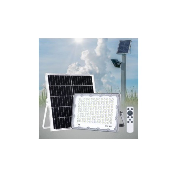 Sistema per illuminazione LED a batteria con ricarica solare realizzato con materiali e componenti di elevata qualità, composto da un pannello fotovoltaico tipo monocristallino con staffa per installazione a parete, di un faro per esterno con design moderno e di ridotto spessore che integra una batteria ricaricabile di elevata efficienza e ottima capacità e di un telecomando per il controllo e gestione delle funzionalità manuali e programmate. Il kit consente l’accensione del faro in modo automatico al calar della luce diurna ed è realizzato, con una tecnologia di controllo che ottimizza al meglio la carica della batteria interna del faro, in funzione della luce solare permettendo l’utilizzo anche in giornate con meno luce, con cielo coperto (nuvole) e durante tutto l’anno ( estate / inverno ).