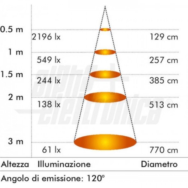 | Angolo di emissione | 120 ° |