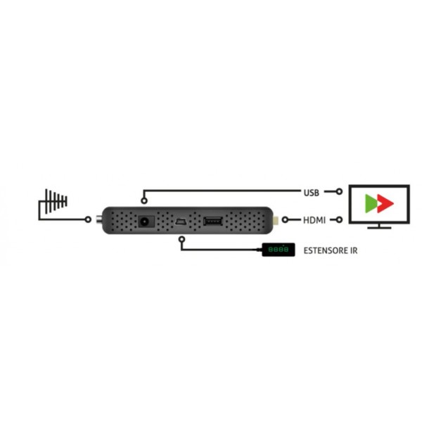 Ricevitore Digitale Terrestre HDMI STICK DVB-T2 H265/HEVC Main 10 – DPT210HA con Telecomando Universale per TV e ingresso HDMI ed alimentazione diretta da USB del TV. Ricevitore ideale per collegamento diretto a TV schermo piatto recenti, ma non compatibili con lo standard della nuova TV Digitale Terrestre.