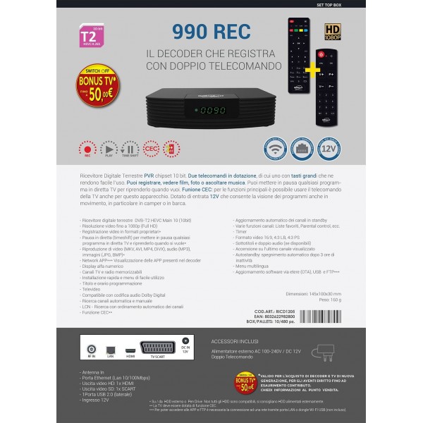 - Connettività WiFi 2.4G/5G con supporto IEEE 802.11 b/g/n/ac