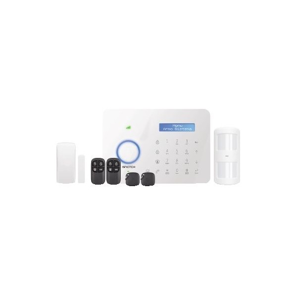 Centrale con sirena interna da 110dB e tastiera di controllo TOUCH; display LCD in lingua italiana; 1 rilevatore magnetico wireless di apertura porte/finestre; 1 sensore ad infrarossi wireless per rilevare le presenze in un’area di 110°/8m ca., con Pet Immunity (non rileva animali domestici sotto i 25kg); 2 radiocomandi di Armo/Disarmo/SOS panico; 2 chiavette di prossimità RFID/TAGS per disarmo e apertura eventuale elettro-serratura di porte o cancelli; doppio combinatore telefonico (PSTN per rete fissa e GSM/GPRS) con sistema di comunicazione Viva-Voce, operanti anche singolarmente o entrambi con funzione di back-up uno sull’altro; batterie al litio di back-up per operatività in caso di black-out elettrico o taglio fili.