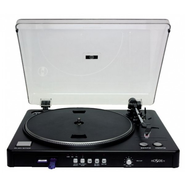 Ascolta, collega e converti! N-Code è un giradischi innovativo che consente di riprodurre i dischi in vinile e di convertire i file musicali digitali direttamente su memorie USB o SD. Inoltre con N-Code, è facile trasferire i dischi da 33-1/3 e 45 giri su un Mac o PC. Basta collegare il giradischi al computer con il cavo USB incluso per iniziare, il software Audacity è fornito in dotazione. E' anche possibile riprodurre i brani MP3 da USB e SD.