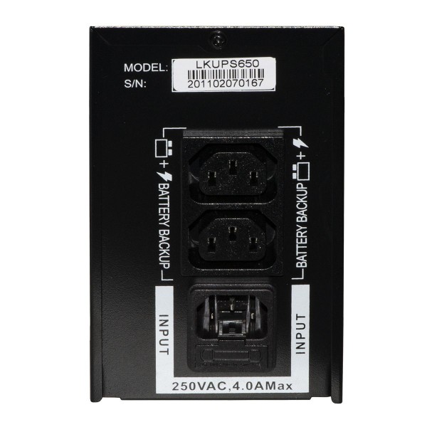 Gruppi di continuità 650VA/390Watt, con custodia in metallo per una maggior sicurezza. Ideale per PC o dispositivi elettronici. Semplice da usare, garantisce protezione contro la perdita di dati ai computer in casa e in ufficio. Con 2 prese IEC C13 femmina in uscita, a cui si possono collegare 2 dispositivi (PC, video ecc.), o una multipresa. Connettore in entrata IEC maschio, il cavo di alimentazione spina italiana è incluso. Con led frontali per identificare lo stato in cui si trova il gruppo di continuità. Con AVR a 3 fasi per l'eliminazione dei disturbi. Tipo d’onda Line interactive con uscitaPWM(Pulse Width Modulation - Modulazione di larghezza di impulso con una portante ad alta frequenza: ciò permette di approssimare più da vicino una funzione sinusoidale). Tempo di intervento dalla mancanza di corrente tipico 2-6 ms, massimo 10 ms. Con 1 batteria da 12V/7A. Input: 220V (145-290Vac±5Vac), Output 220V +/- 10% Il tempo di ricarica per il recupero del 90% della capacità è di 4-6 ore. Protezioni: 1 - protezione basso voltaggio della batteria 2 - protezione contro i sovraccarichi 3 - protezione contro i corto circuiti Funzioni: Ripartenza al ritorno della corrente Ricarica automatica offline Misure: 305x85x140 mm. Manuale in italiano.