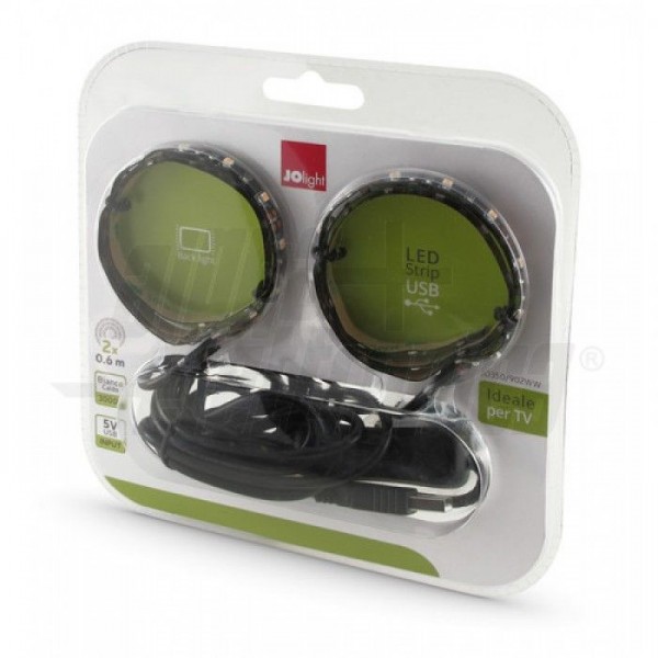 Il kit include due nastri led bianco caldo dotati di bi-adesivo e cavo di alimentazione USB 5V con interruttore.