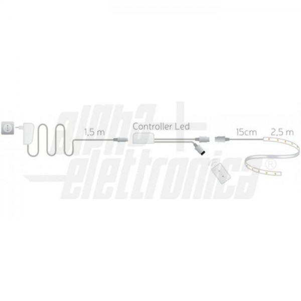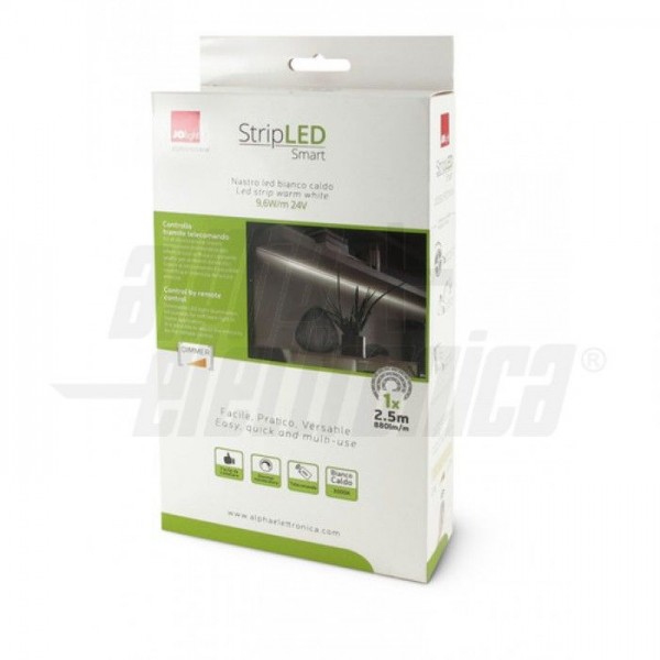 Il kit include un nastro led ad alta intensità bianco caldo dotato di bi-adesivo, alimentazione 24V, controller con telecomando multifunzione con il quale è possibile modificare l'intensità della luce emessa dal nastro led.