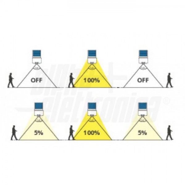 II: la lampada rimarrà accesa al 5% fino al rilevamento del movimento, dove si accenderà al 100%;