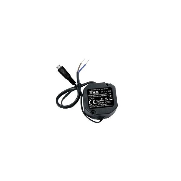 Tensione ingresso: 220-240Vca, 50/60HzTensione uscita: 5VccCorrente uscita: 1AGrado protezione: IP67Lunghezza cavo ca: 15 cmLunghezza cavo cc: 15 cmConnettore uscita: Micro USBDimensioni: 49x49x25mmPeso: 96 gr