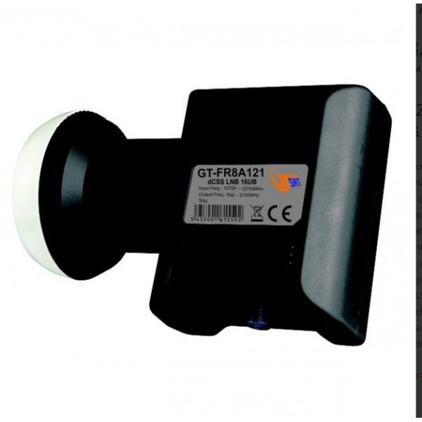 LNB a Doppia Tecnologia monocavo L’LNB GT-FR8A121 è in grado di funzionare CONTEMPORANEAMENTE come un classico LNB SCR (con 4 User Band) e come LNB dCSS (con 12 UB) garantendo la completa indipendenza fino a 16 ricevitori collegati su un unico cavo. L’LNB è quindi compatibile con tutto il parco Decoder esistente (inclusi i decoder SkyHD,e mySKYHD) in modalità SCR ed integra già la nuova tecnologia dCSS adottata dai maggiori operatori di Pay TV Europea. L’LNB garantisce la retrocompatibilità con i decoder SCR anche in caso di presenza di Decoder con protocollo dCSS sullo stesso cavo. LNB 100% conforme alle specifiche SCR e dCSS SKY ITALIA