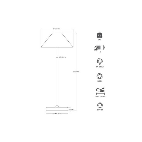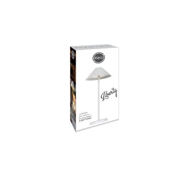Liberty è una Lampada da Tavolo ricaricabile dal design semplice ed elegante. Grazie alla sua batteria con durata fino a 7h continue e ricaricabile tramite il cavo USB-C incluso, è possibile usarla dove si vuole, senza doverla collegare alla corrente elettrica. Portatile, leggera è utilizzabile sia in interno che in esterno (IP54) come: salotti, ristoranti, caffè, camere da letto, cucine, uffici. Grazie al sistema di controllo ”SOFT TOUCH” basta sfiorare il tasto per accendere e spegnere la lampada e mantenerlo premuto per effettuare la regolazione dell’intensità luminosa (DIMMER). Base e supporto in alluminio ,diffusore e cappello in plastica. Batteria ricaricabile al litio da 4000mAh, alimentazione 5V 1A, alimentatore NON incluso. Colore: BIANCA