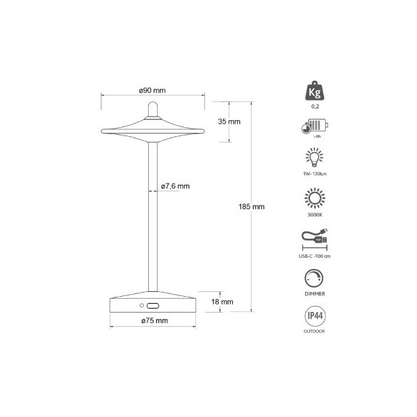 Sakè è una Lampada da Tavolo ricaricabile dal design semplice ed elegante. Grazie alla sua batteria ricaricabile tramite il cavo USB-C incluso, è possibile usarla senza doverla collegare alla corrente elettrica. Portatile, leggera è utilizzabile sia in interno che in esterno come: salotti, ristoranti, caffè, camere da letto, cucine o uffici.