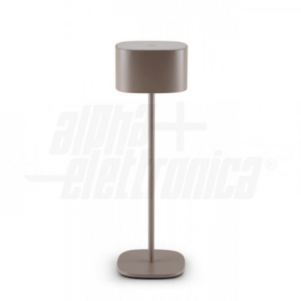 Lampada da tavolo a LED a batteria. Interruttore Touch illuminato nella parte superiore. Emissione di luce calda verso il basso. La lampada integra una batteria agli ioni di litio per una durata della carica maggiore. Disponibile in versione bianca, caffè, sabbia e verde petrolio.