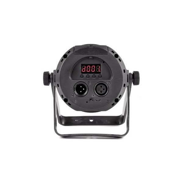 Faretto Spot a LED. 1 LED RGBW da 10W. Funzionamento automatico o tramite DMX (6 canali). Perfetto per installazioni private o professionali fisse o temporanee. Incorpora una batteria ricaricabile tramite USB che garantisce massima flessibilità di installazione. Telecomando IR in dotazione. Staffa per installazione inclusa. Dimensioni 154 x 112 x 191mm. Peso 0,6Kg.