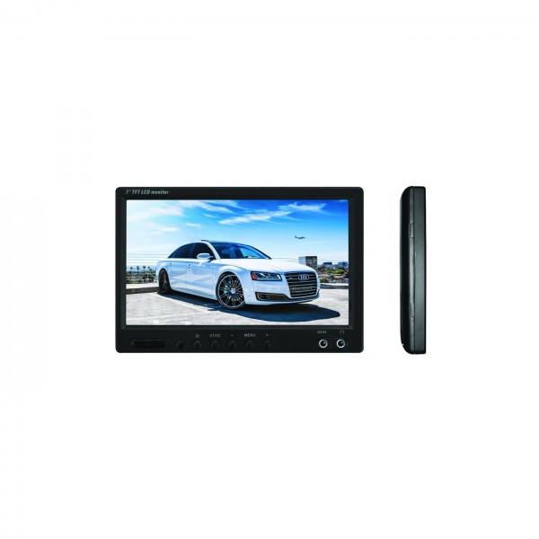 In dotazione: staffa di supporto con biadesivo, cavo adattatore accendisigari, cavo audio-video-alimentazione-ingresso sensore retromarcia, cavetto ingresso AV con spinotto jack, telecomando con batterie incluse.