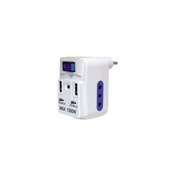 Con alveoli di protezione. Due porte USB che consentono la ricarica di due apparati contemporaneamente. Ideale per iPad, iPhone, iTune, iPod, telefoni cellulari, MP3, GPS, ecc.