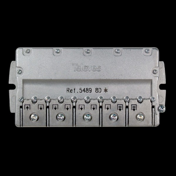 Partitore da 8 vie con sistema di connessione EasyF, per segnali SMATV, con un design compatto ed un comportamento elettronico efficiente.