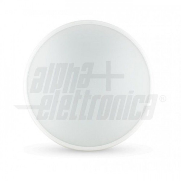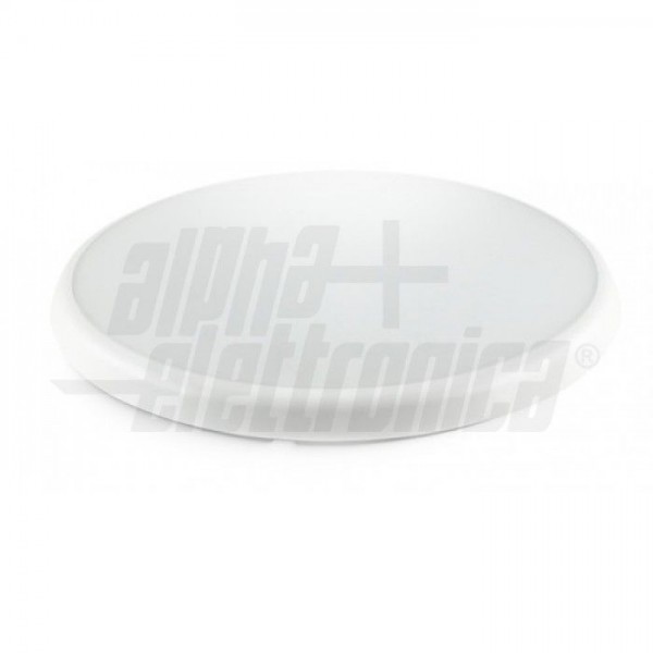Emissione diffusa. Base bianca in materiale plastico e diffusore in policarbonato opale.