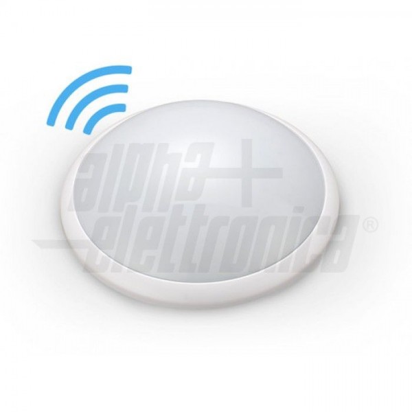 Apparecchio led con sensore di movimento a microonde. Installazione a plafone o a parete in applicazioni interne o esterne.