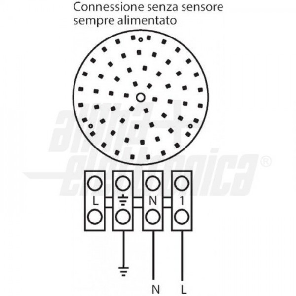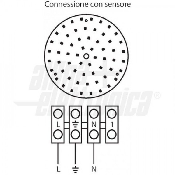 Il sensore integrato è un rilevatore di movimento a microonde che emette onde elettro-magnetiche ad alta frequenza (5,8GHz) e riceve il loro eco. La trasmissione ad alta frequenza è minore di 10mW.