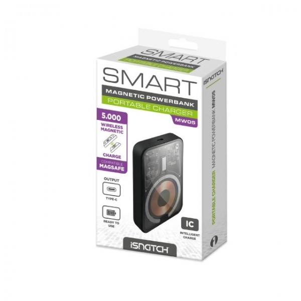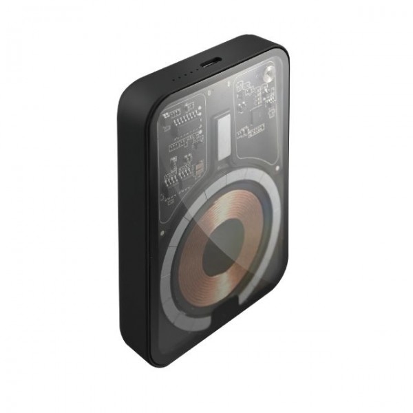 Il Powerbank della serie MW 5000 mAh ha un design a circuito visibile. Con una potenza Max 5W per la ricarica wireless, prestare attenzione alla potenza del dispositivo. Il power bank supporta anche l'uscita USB-C 5V 2A . Il sistema di controllo della carica, gestito da un indicatore a led gestisce sia la ricarica della Power Bank stessa, sia il controllo della ricarica dei dispositivi connessi.
