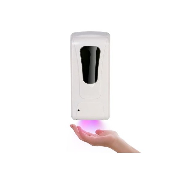 Dispenser automatico con sensore IR per saponi, liquidi e gel igienizzanti / disinfettanti. Il sensore evita ogni contatto diretto con il dispenser e riduce la possibilità di contaminazioni reciproche tra utenti. Dispone inoltre di luce UV, efficace contro molti agenti infettivi, per sanificazione. Per questo motivo, oltre che per uso domestico, il dispenser è utile in ogni locale pubblico, incluse le toilette, per studi professionali, studi medici, bar, pub, ritrovi, comunità e hotel. La tanica ricaricabile contiene fino a un litro di sostanza igienizzante. Scocca in ABS, colore bianco, montaggio a parete semplice e rapido. Può essere alimentato a scelta a batterie (NON incluse) per la massima flessibilità d'uso, o con alimentatore di rete (NON incluso) opzionale (Cod. 34.0106.40).