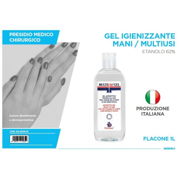 Multiusi gel è un prodotto pronto all’uso, contenente 62% alcool etilico per una rapida ed efficace igiene delle mani, studiato per igienizzare, disinfettare e detergere le mani senza l’uso dell’acqua. La sua particolare formulazione asciuga rapidamente lasciando le mani morbide e fresche. A differenza dei normali gel igienizzanti, Multiusi Gel disinfetta le mani, eliminando germi e batteri e riducendo il rischio di infezioni. Multiusi Gel è il disinfettante mani a base alcoolica studiato appositamente per gli specialisti del settore medico ospedaliero: disinfettando le mani in pochi secondi, Multiusi Gel è infatti il prodotto ideale da utilizzare tra una visita e l’altra perché garantisce la massima igiene e decontaminazione. Azione disinfettante e dermoprotettiva.