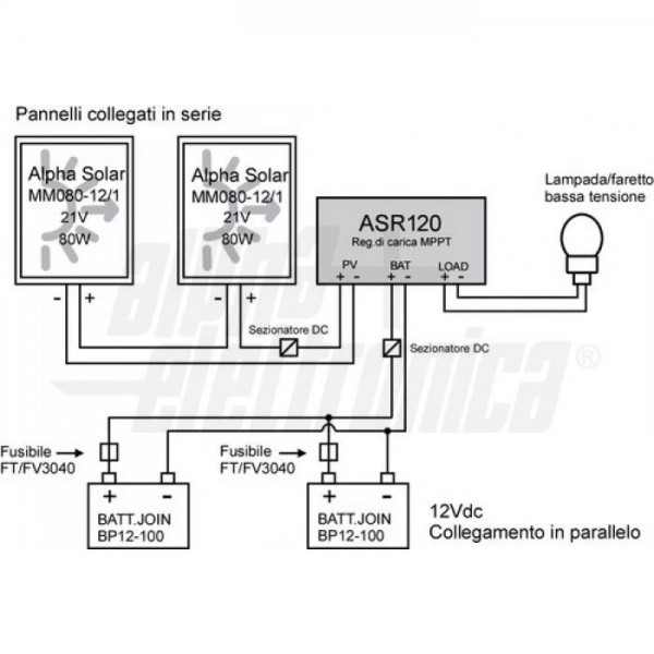 | Potenza massima pannelli (batt. 12V) | 240 W |