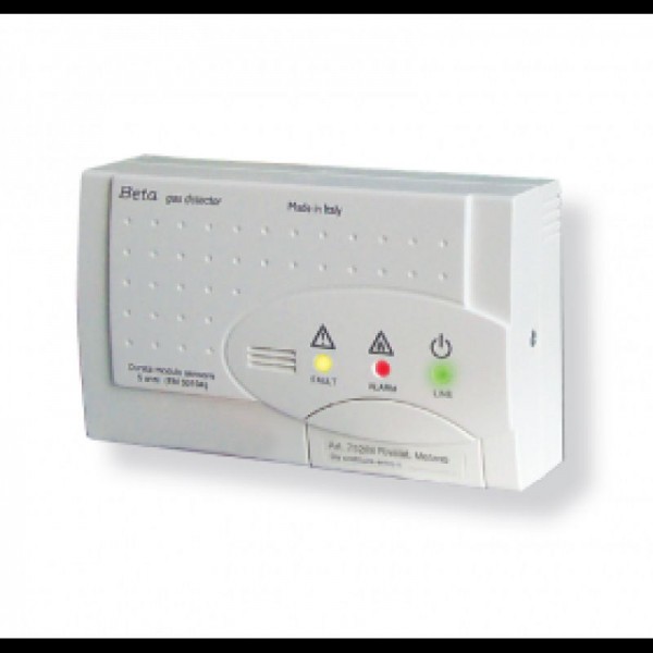 Specifiche standard: Certificato alle norme: EN 50194; Alimentazione: 230 Vca – 50÷60 Hz e 12Vcc; Assorbimento: 4,5VA max a 230Vca - 2,5W a 12Vcc; Soglia di allarme: 10% del LIE - Campo di misura: 0÷20% LIE; Sensore: Catalitico; Allarme: ottico (led rosso) ed acustico (buzzer interno 85dB A a 1 m); IP42
