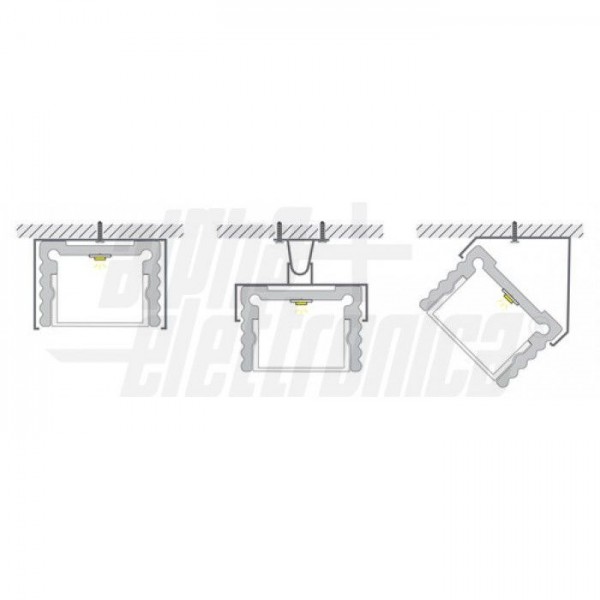 Il profilo illustrato è un componente. Il suo corretto funzionamento con nastri led o moduli led dipende da importanti requisiti di installazione e dimensionamento. La potenza dissipabile è stata calcolata considerando una temperatura ambiente non superiore a 35°C in aria. Condizioni di installazione differenti devono essere opportunamente verificate da personale tecnico. Utilizzare la copertura solo con nastri led IP20.