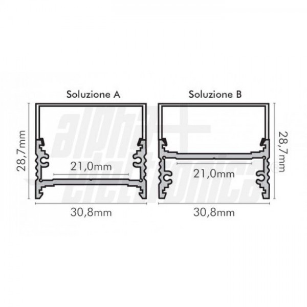 Il profilo illustrato è un componente. Il suo corretto funzionamento con nastri led o moduli led dipende da importanti requisiti di installazione e dimensionamento. La potenza dissipabile è stata calcolata considerando una temperatura ambiente non superiore a 35°C in aria. Condizioni di installazione differenti devono essere opportunamente verificate da personale tecnico. Utilizzare la copertura solo con nastri led IP20.