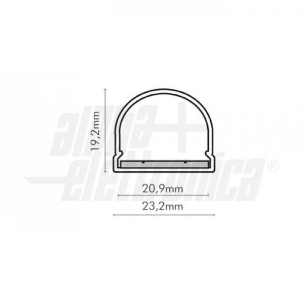AttenzioneIl profilo illustrato è un componente. Il suo corretto funzionamento con nastri led o moduli led dipende da importanti requisiti di installazione e dimensionamento. La potenza dissipabile è stata calcolata considerando una temperatura ambiente non superiore a 35°C in aria. Condizioni di installazione differenti devono essere opportunamente verificate da personale tecnico. Utilizzare la copertura solo con nastri led IP20.
