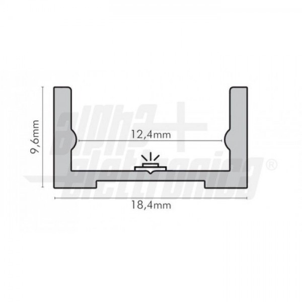 AttenzioneIl profilo illustrato è un componente. Il suo corretto funzionamento con nastri led o moduli led dipende da importanti requisiti di installazione e dimensionamento. La potenza dissipabile è stata calcolata considerando una temperatura ambiente non superiore a 35°C in aria. Condizioni di installazione differenti devono essere opportunamente verificate da personale tecnico. Utilizzare la copertura solo con nastri led IP20.