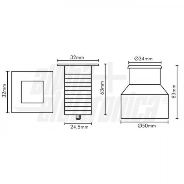 Faretto con driver elettronico integrato con ingresso capacitivo. Utilizzare con alimentatore 3 volte la potenza nominale.
