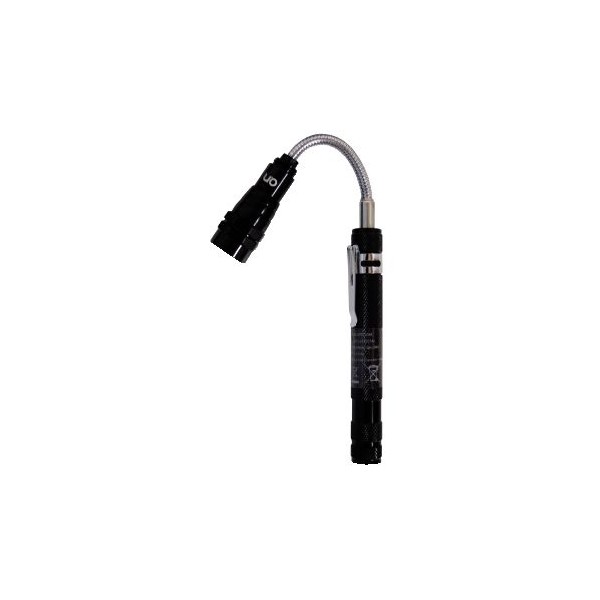 - 3 LED ad alta potenza - Corpo in alluminio verniciato - Asta telescopica estensibile fino a 570mm. - Testa luminosa montata su braccetto flessibile ed orientabile - Pulsante d'accensione con protezione per polvere ed acqua - Clip da taschino in metallo - Alimentazione con 4 batterie a bottone tipo LR44 (incluse) - Dimensioni 20x175-570mm. (diametro x lunghezza minima-massima) - Peso 130gr.