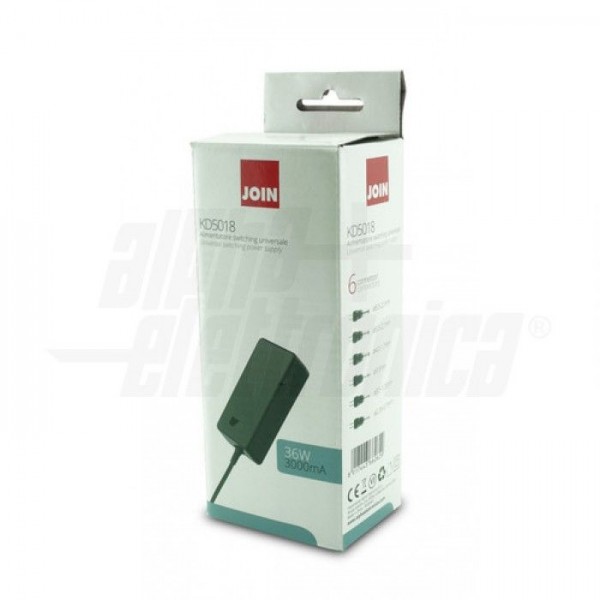 Alimentatore Switching 36W - 5/6/7/8/9/10/11/12/13/14/15/16/17/18/19/20/21/22/23/24Vdc - 3A - 6 connettor